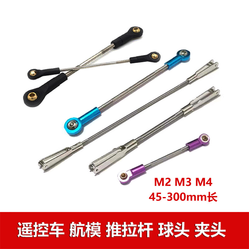 航模四驱车diy零件m2 m3 m4金属塑胶球头扣 铁夹头螺杆推拉杆套装
