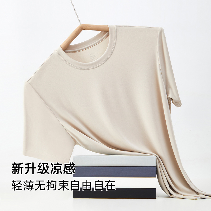 莫代尔男士短袖T恤夏薄款居家圆领上衣休闲宽松可外穿大码打底衫