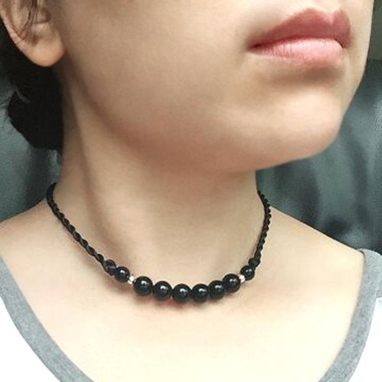 925纯银锁骨链黑色项圈脖颈链韩国颈带简约个性脖子上的饰品短款