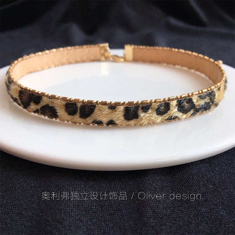 超时髦性感豹纹chocker项链韩国个性网红项圈秋冬丝绒颈带锁骨链