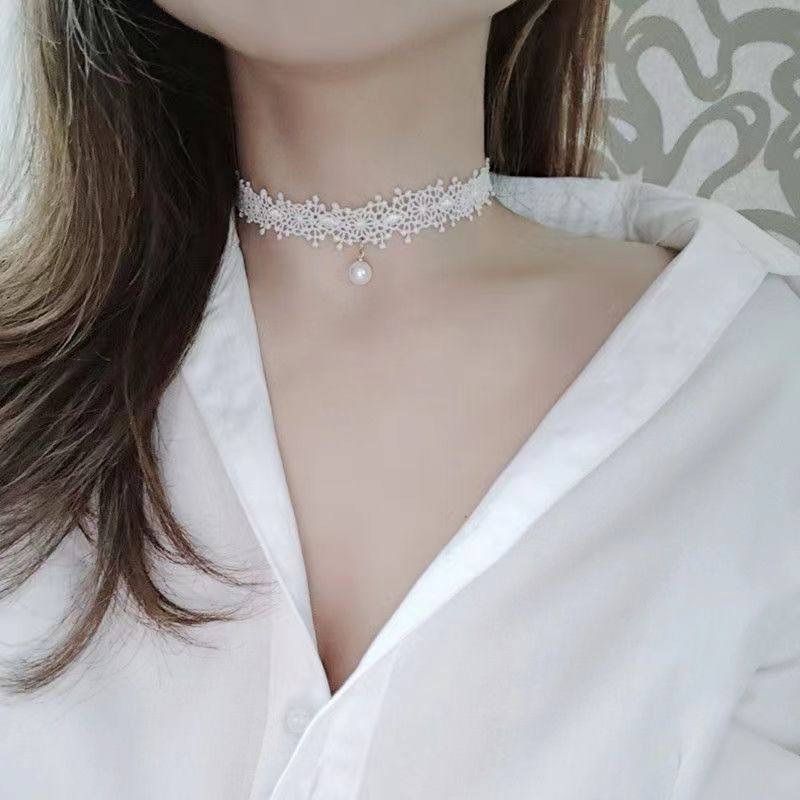 简约锁骨链韩国颈带超仙颈饰蕾丝项圈颈饰珍珠项链女脖子饰品新娘