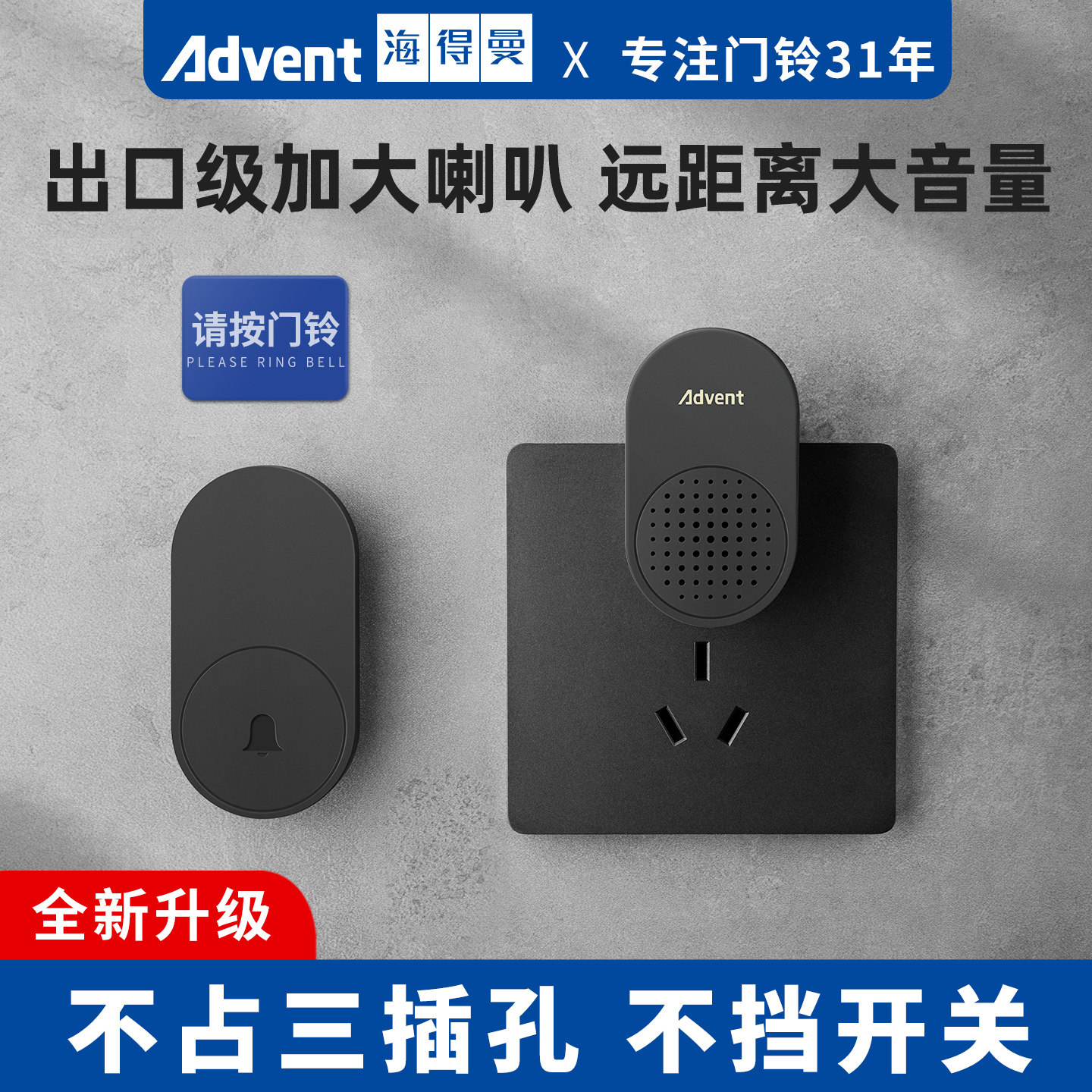 海得曼无线门铃家用一拖二超远距离遥控免打孔电子黑色海德曼门玲