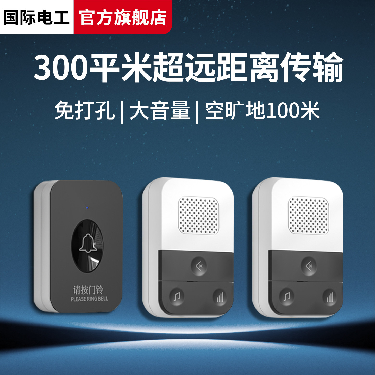 国际电工无线门铃家用一拖二超远距离遥控免打孔电子铃铛黑色门铃