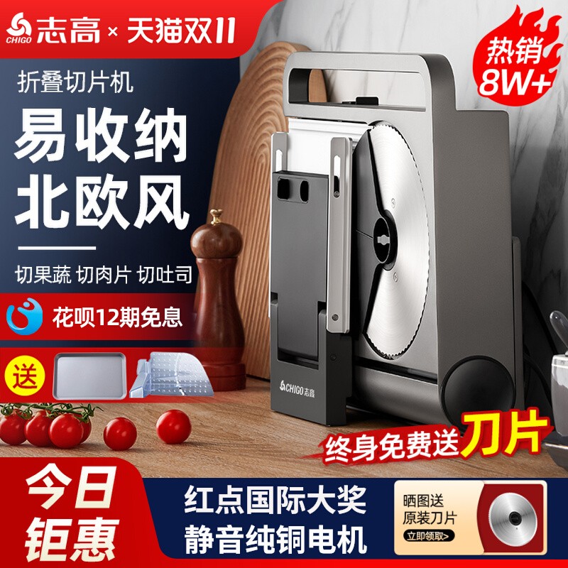 志高切片机家用折叠小型电动切肉片机羊肉卷肥牛冻肉刨肉切肉神器