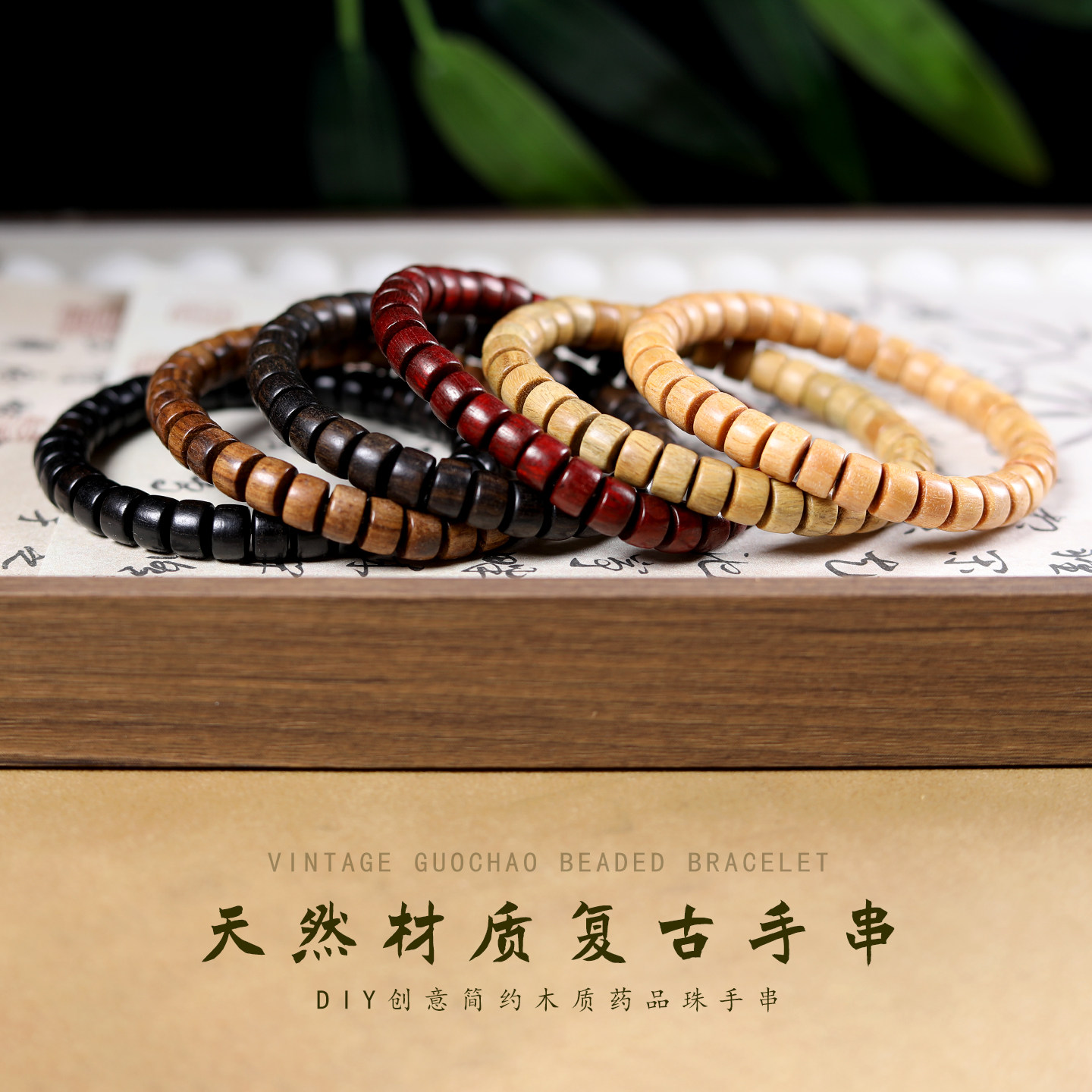 黑檀木料药片珠手串男女款文玩沉香木老料时尚民族风佛珠念珠手链