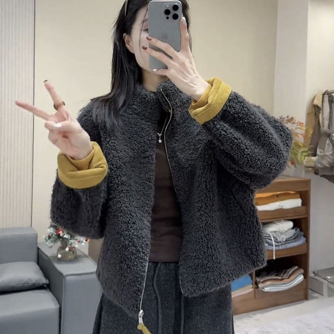 - 羊羔毛中长款