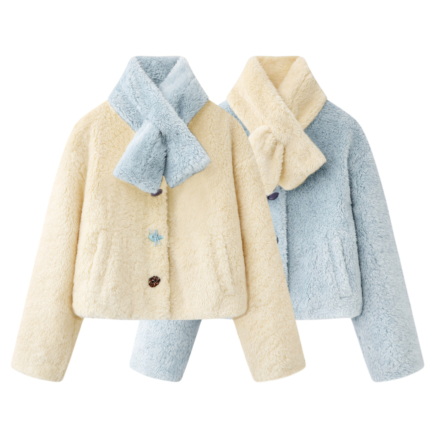 紫璐莱云朵hug~韩系设计感围脖领羊羔毛皮毛一体毛毛短外套女097X