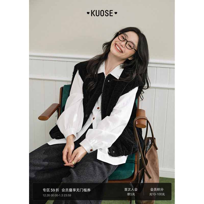 阔色黑色可拆卸两穿马甲毛毛短外套小个子25秋冬季新款女气质上衣