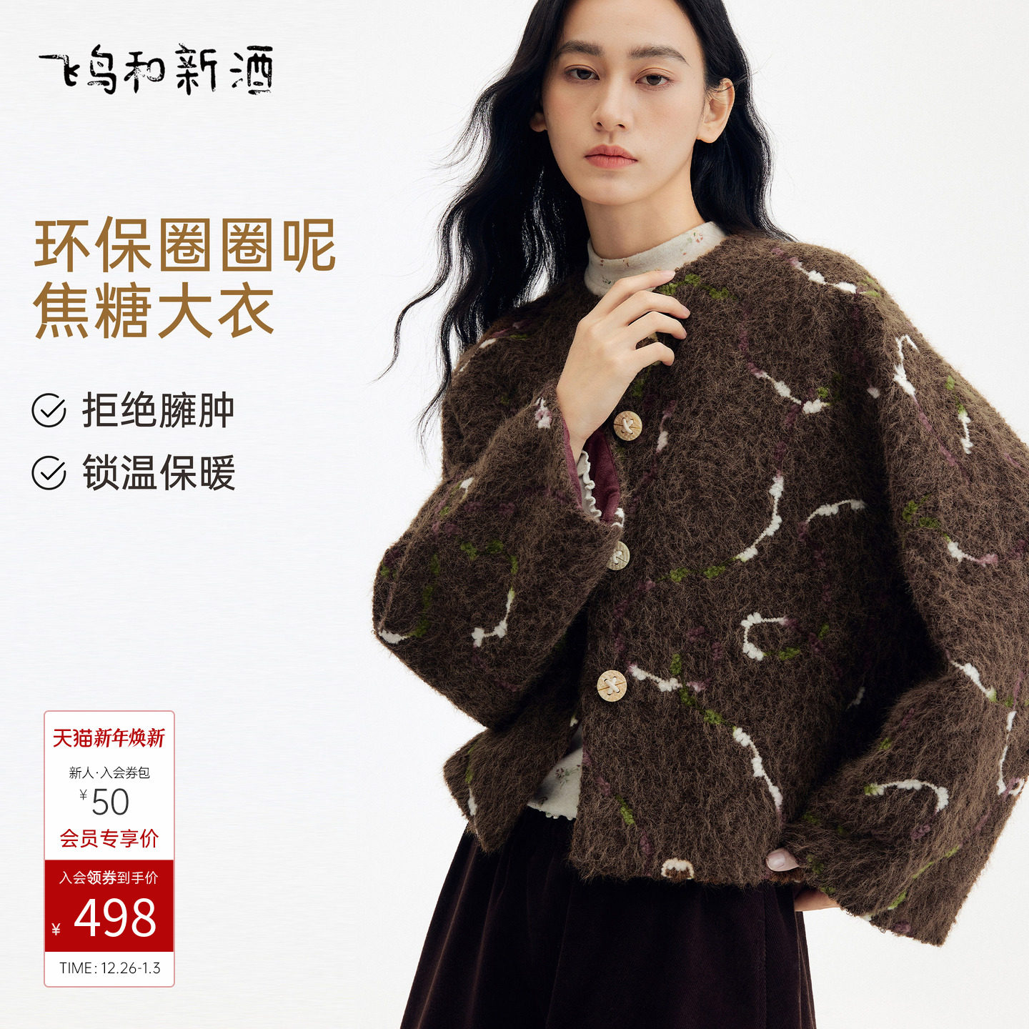 飞鸟和新酒2025冬季新款费尔岛宽松小个子时尚保暖毛毛短外套女
