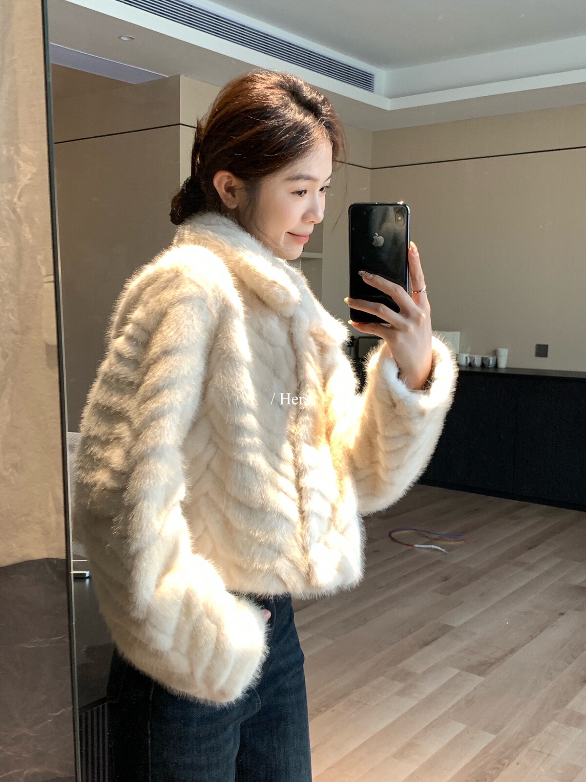 一勺甜 hers秋冬简约精致贵气感毛毛短外套女2025保暖上衣92732#