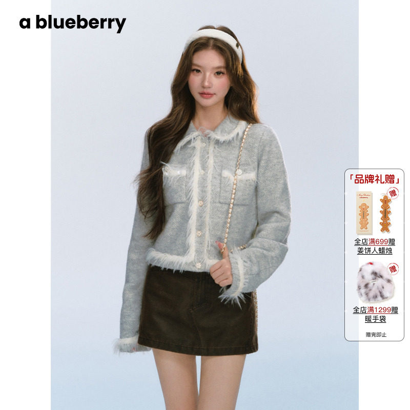 ablueberry流苏毛边小香风外套女秋冬新款法式气质拼接毛毛短外套