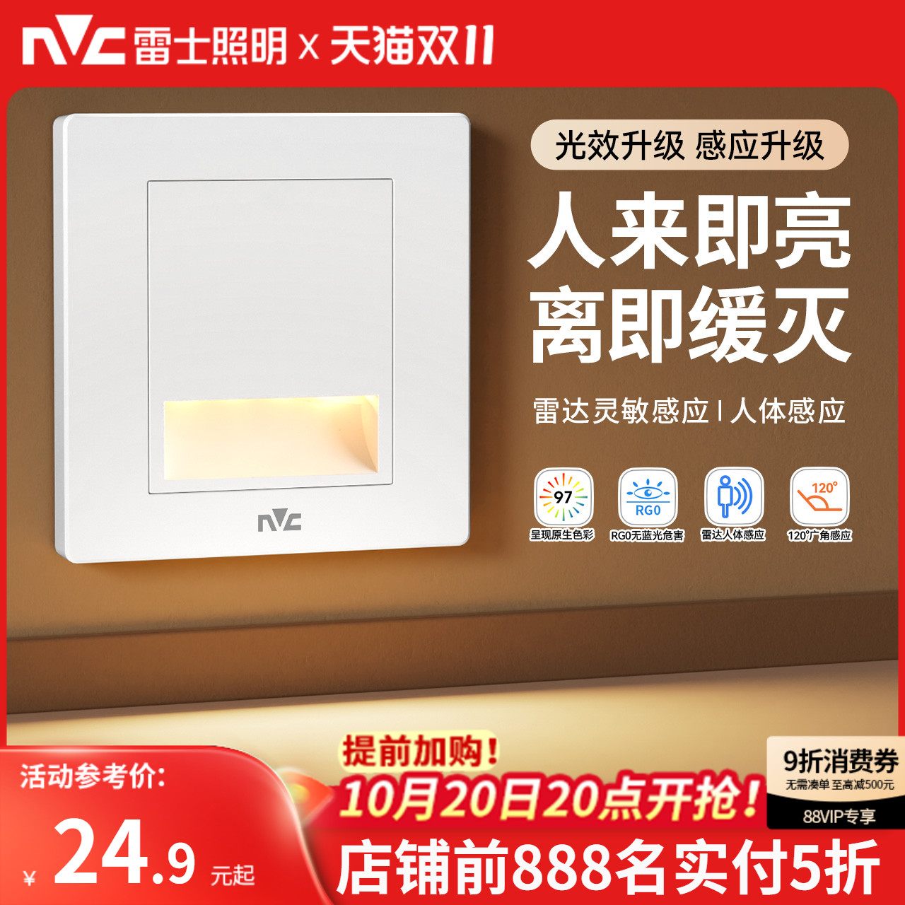 雷士照明人体感应地脚灯LED小夜灯86型嵌入式追光灯过道走廊灯