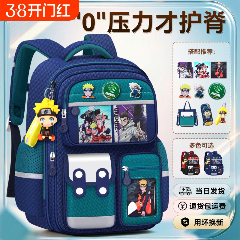新款火影书包小学生男女孩1-3-6年级大容量超火卡通减负护脊儿童双肩背包英伦防水减压高颜值