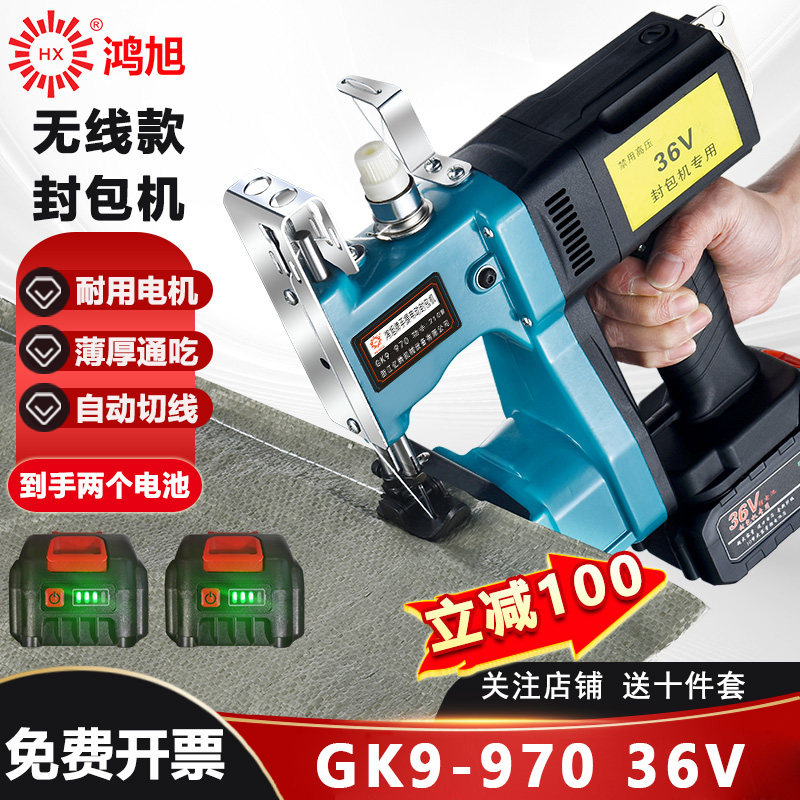 鸿旭GK9-970手提式无线电动缝包机充电封包机双电池锂电池打包机