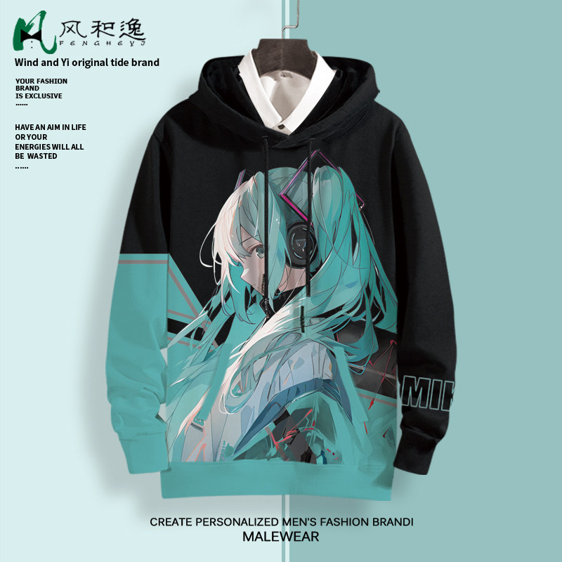 连帽卫衣外套男初音未来动漫周边二次元套头上衣加绒加厚大码衣服