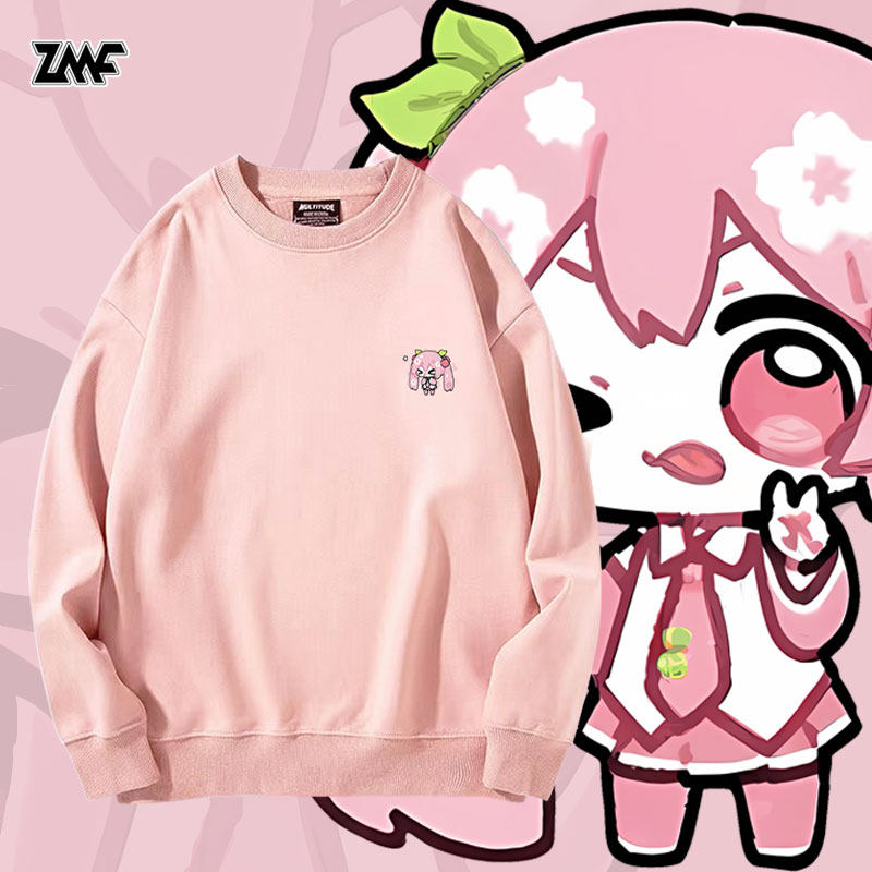 初音未来樱花初音二次元周边加绒圆领卫衣男女学生秋冬套头衣服潮