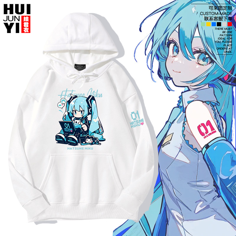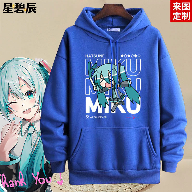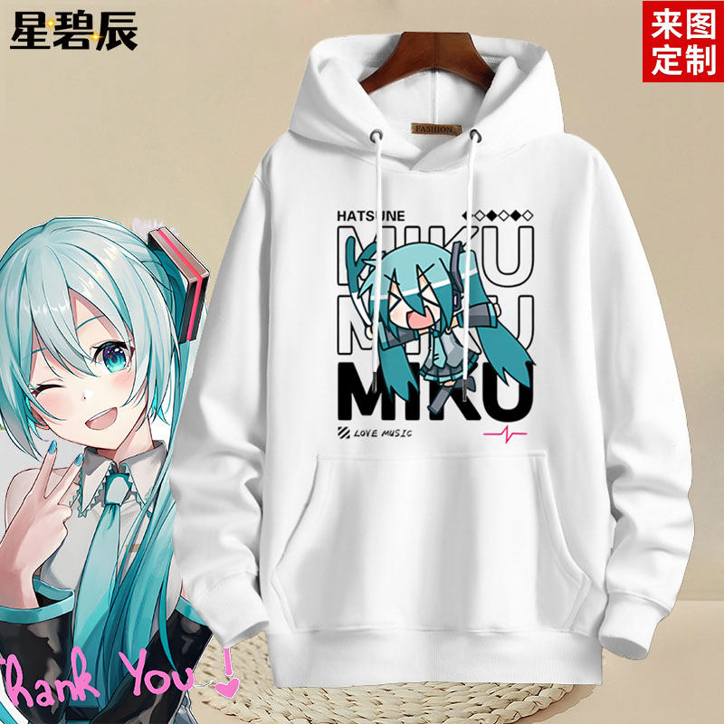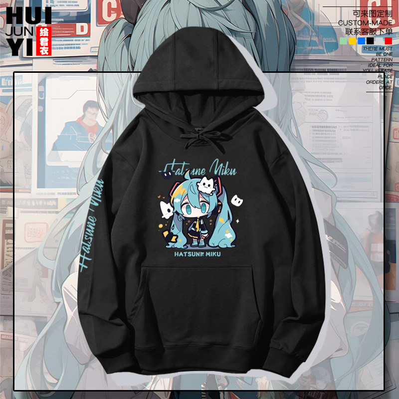 初音未来MIKU二次元动漫周边男女男女情侣学生可定制卡通带帽卫衣