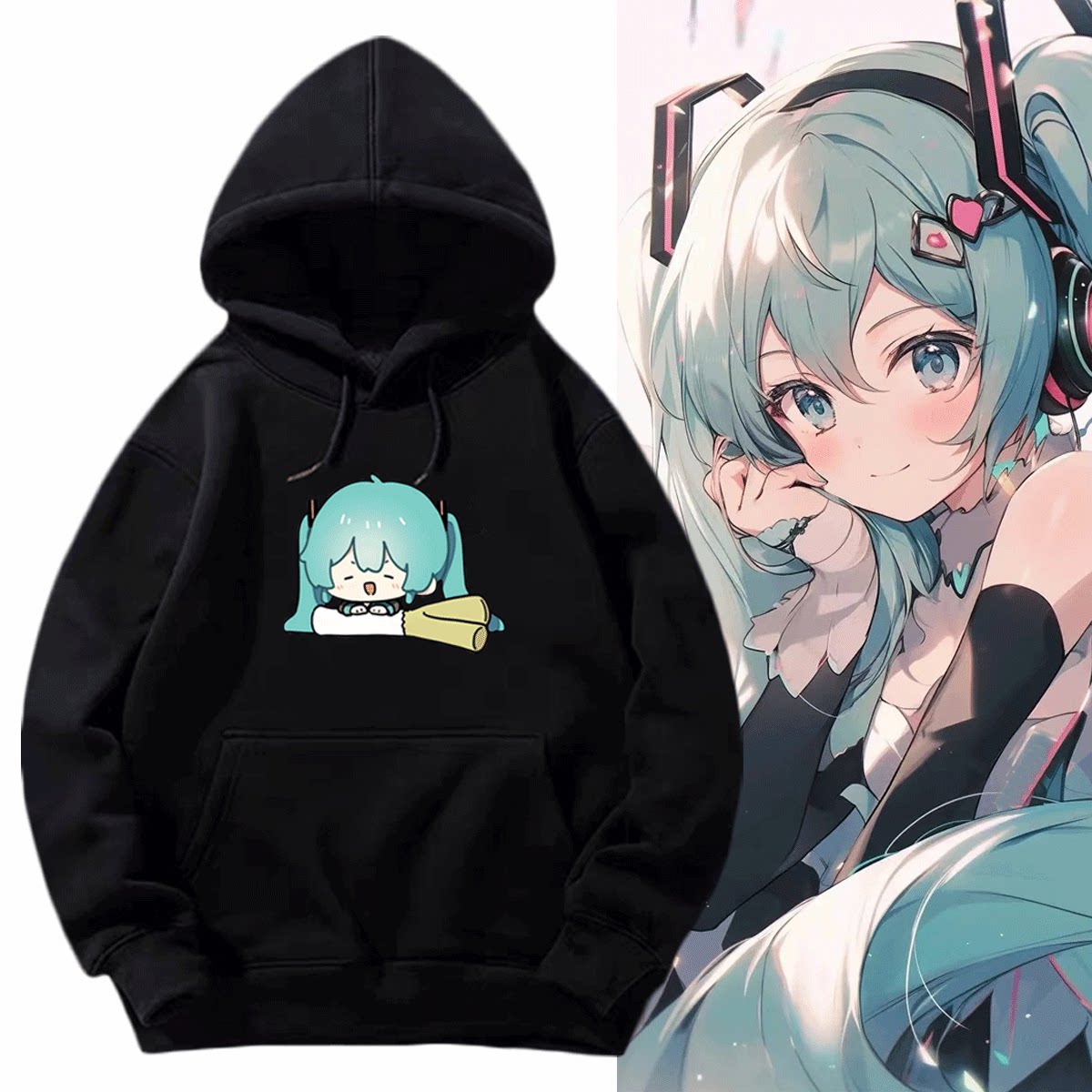 初音未来联名歌声合成UTAU虚拟歌手重音Teto动漫男女定制带帽卫衣