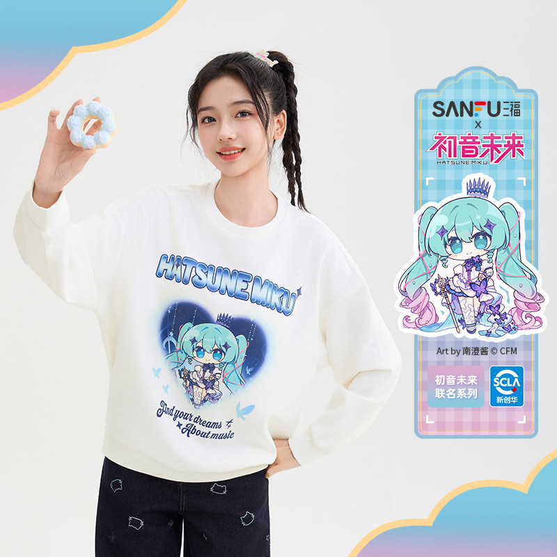 【初音未来联名】三福套头卫衣2025秋季渐变印花宽松上衣女508740