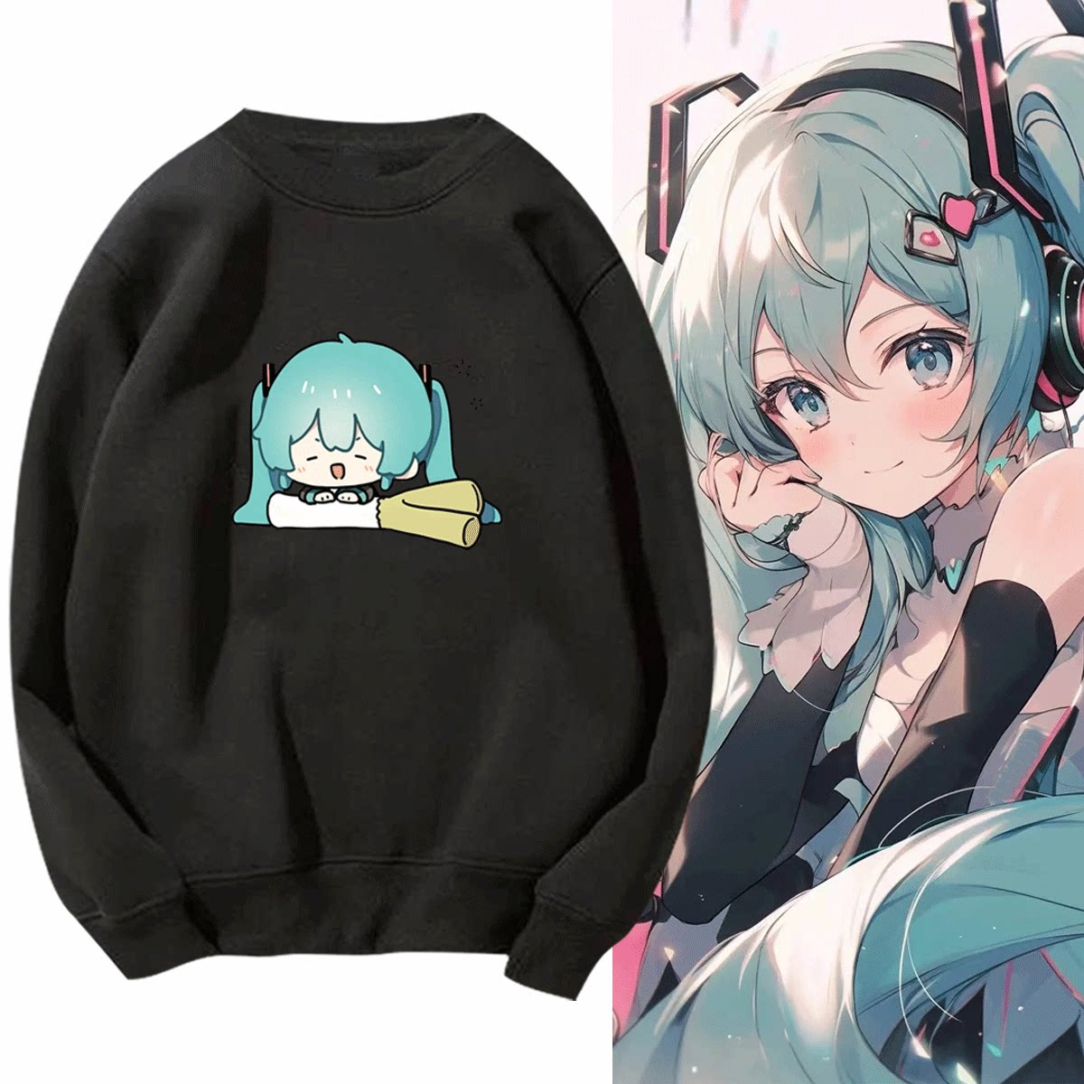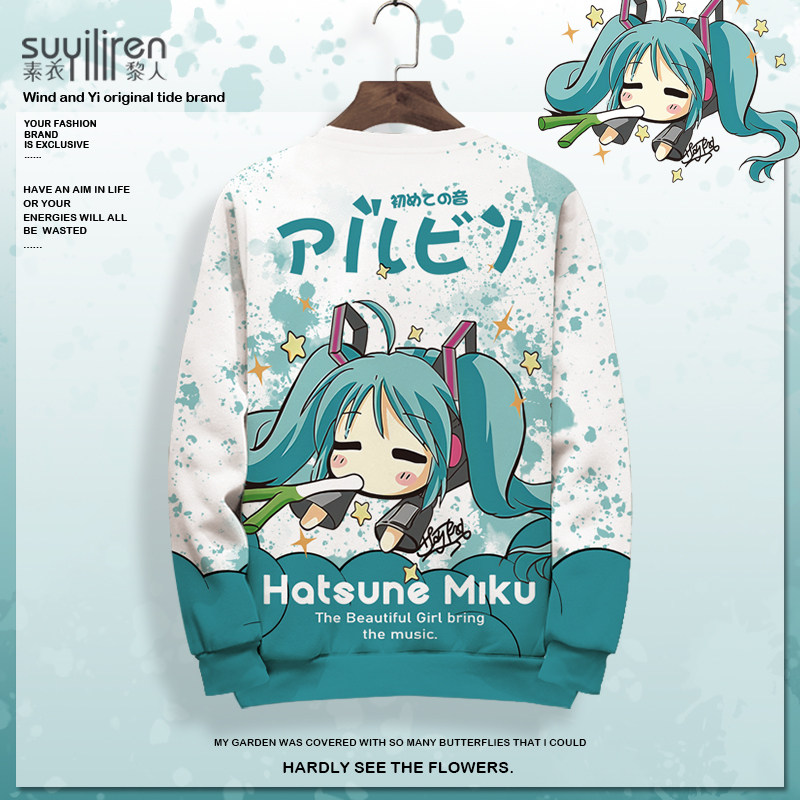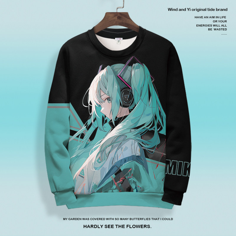 潮牌初音未来联名卡通周边圆领卫衣男生长袖T恤miku印花加绒上衣