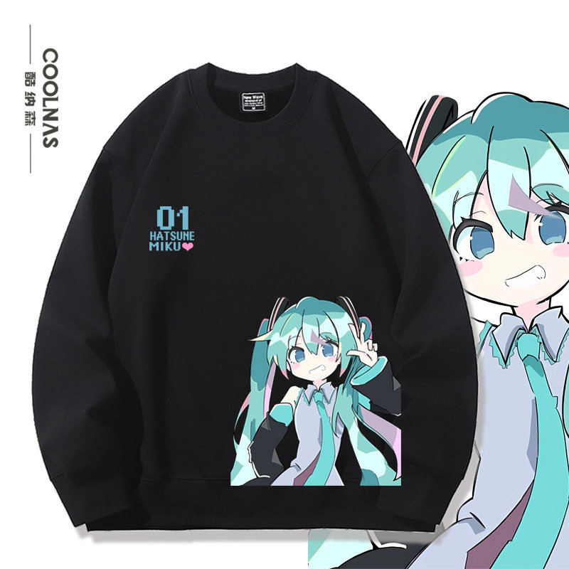 动漫联名圆领卫衣男初音未来miku周边衣服秋冬加绒加厚宽松外套