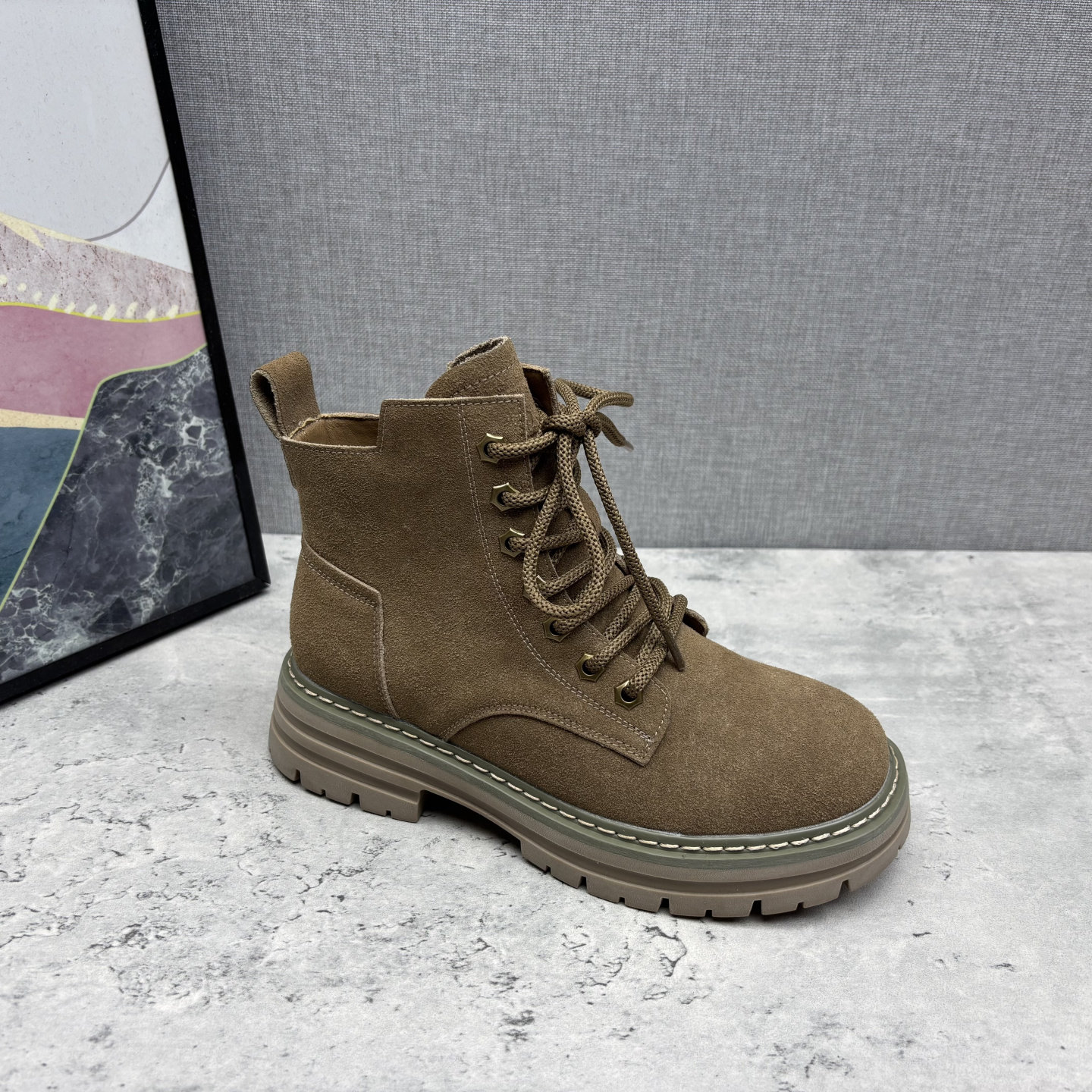 - 马丁靴磨砂皮女平底