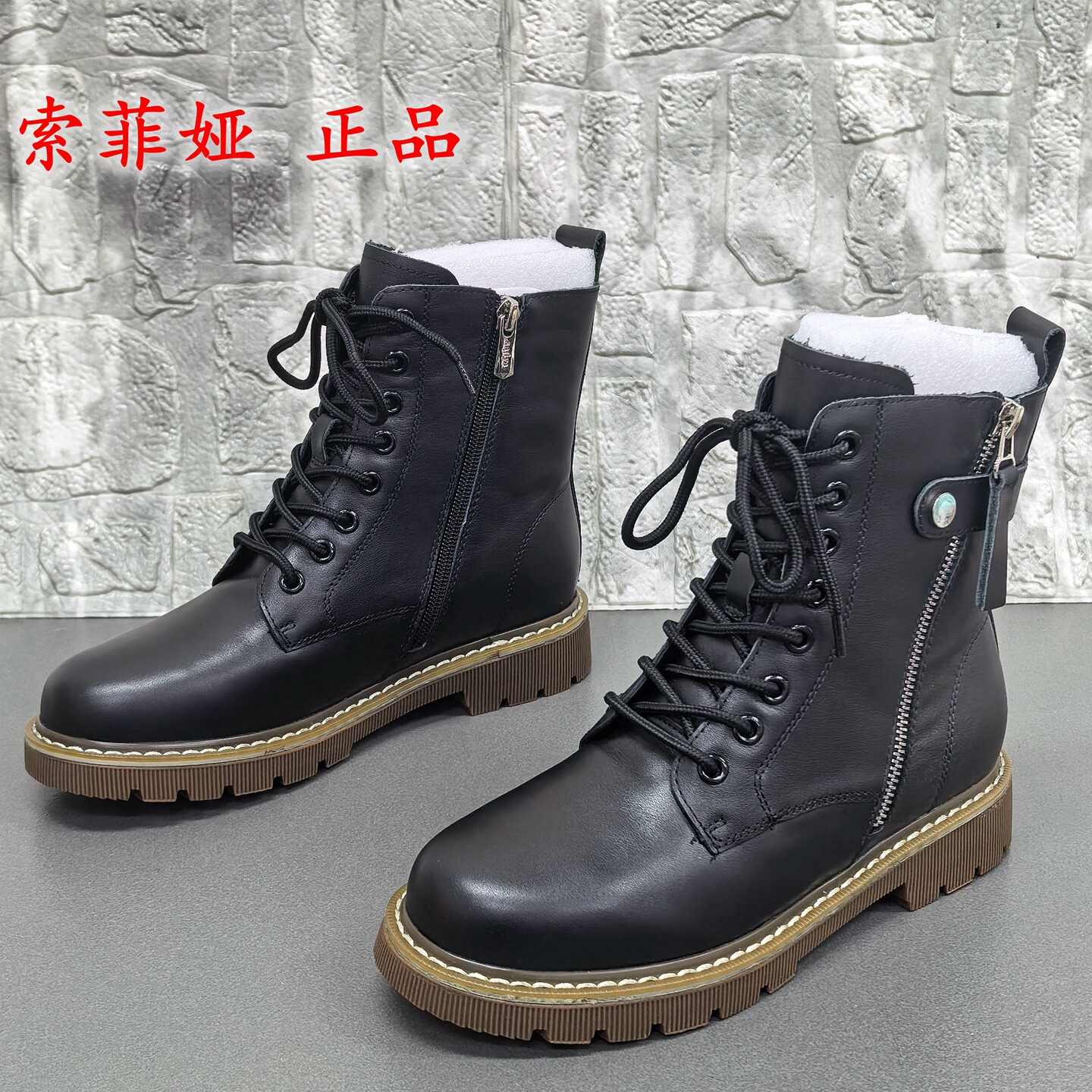索菲娅正品撤柜处理英伦风真皮马丁靴女冬季系带侧拉链短靴百搭潮