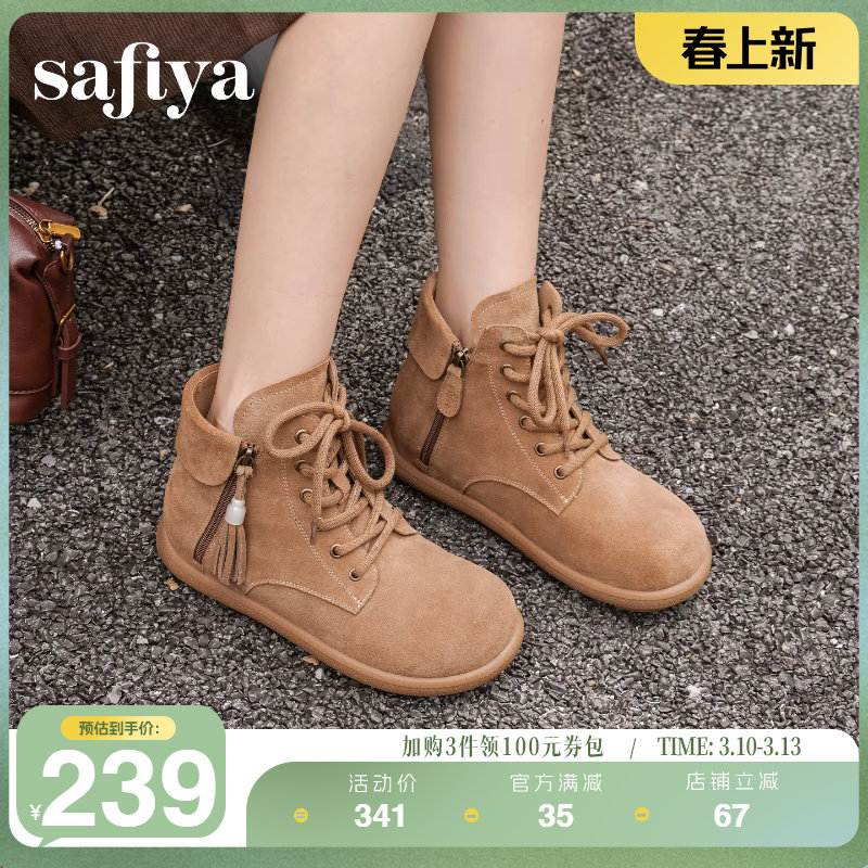 Safiya/索菲娅冬季新品游牧风流苏侧拉链系带平底靴子短靴马丁靴