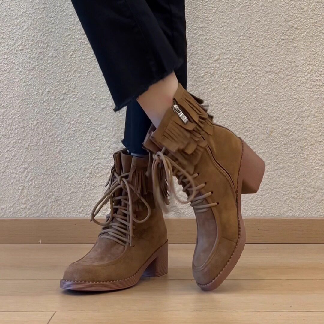 - 真皮流苏靴