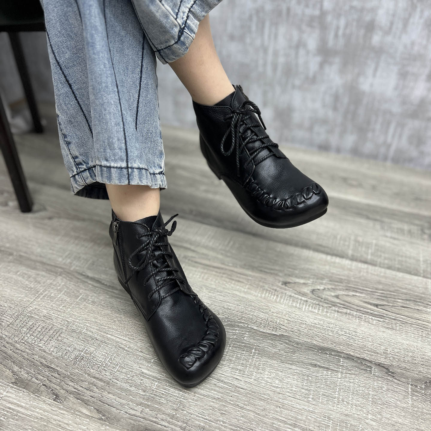 - 真皮系带短靴女
