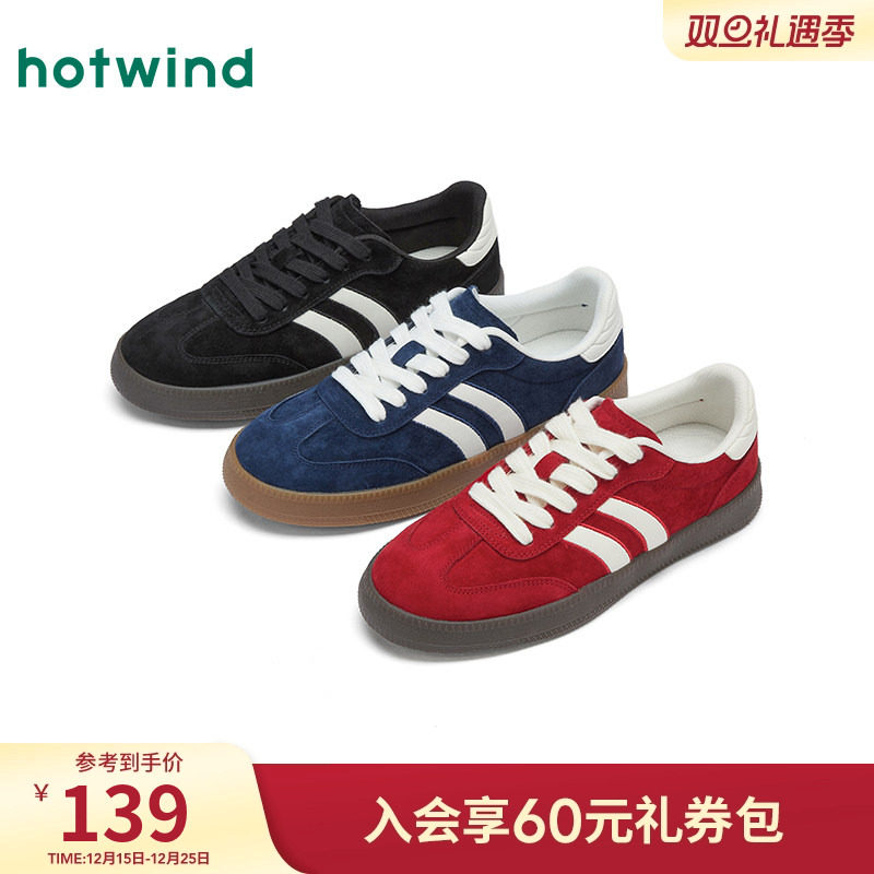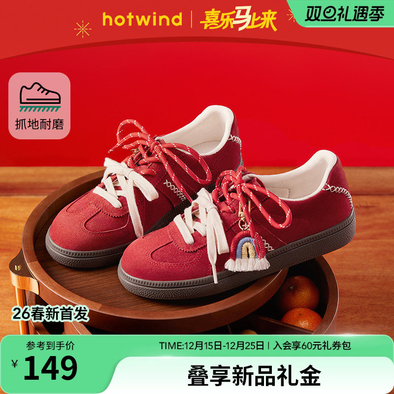 热风红色德训鞋女鞋2025年冬季新款女士运动户外休闲鞋子时尚板鞋