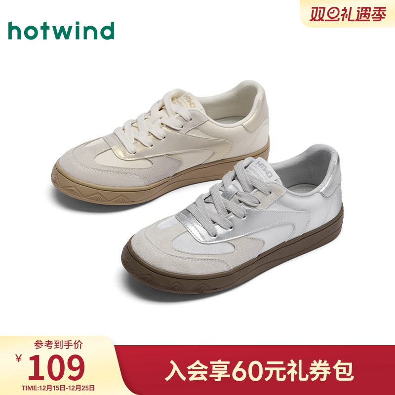 热风平底德训鞋女款2025年冬季新款银色户外休闲鞋子通勤轻便女鞋