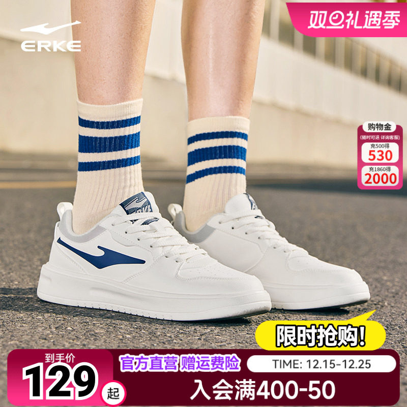 鸿星尔克板鞋男鞋秋季新款白色休闲鞋子轻便男款运动鞋厚底小白鞋