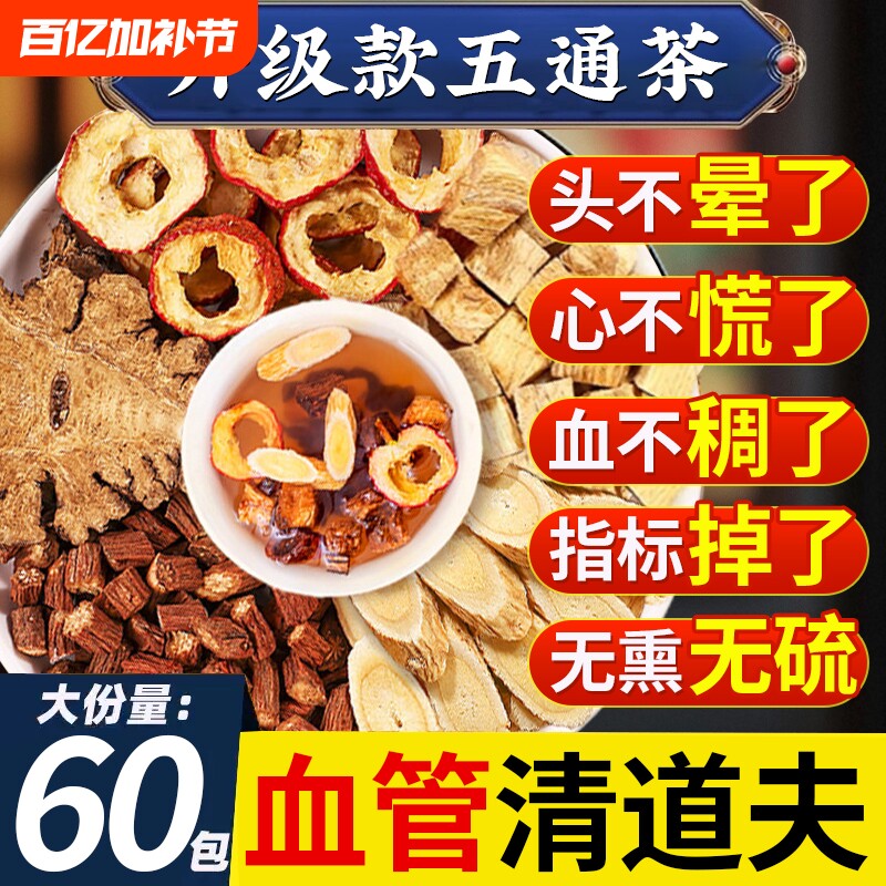 五通茶丹参黄芪山楂川芎葛根茶三通茶泡水喝五福茶中药材正品血管