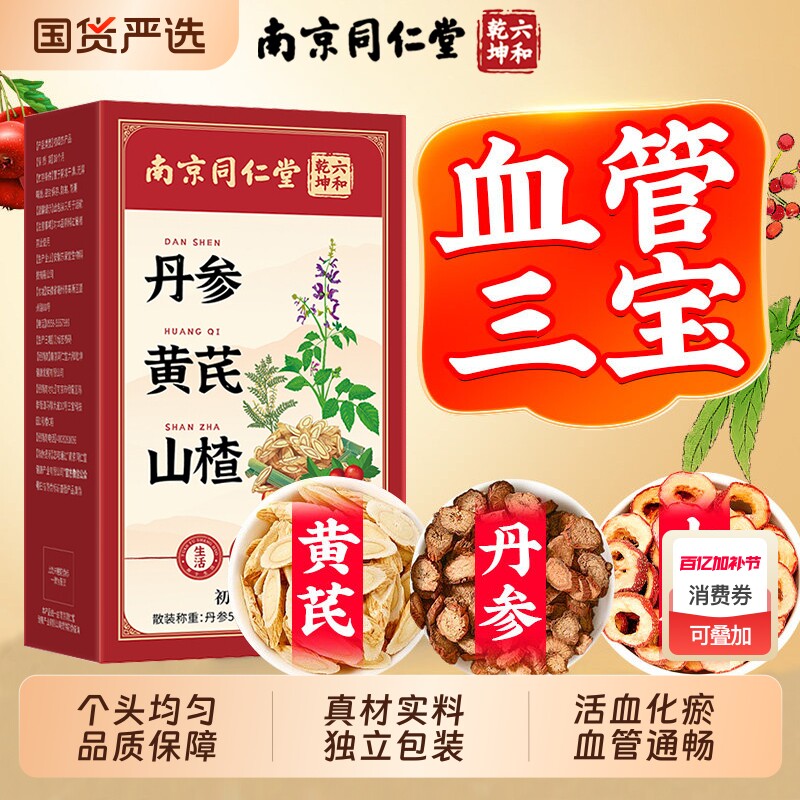 三通茶山楂丹参黄芪茶组合泡水煮茶包老年人正品中药材官方旗舰店
