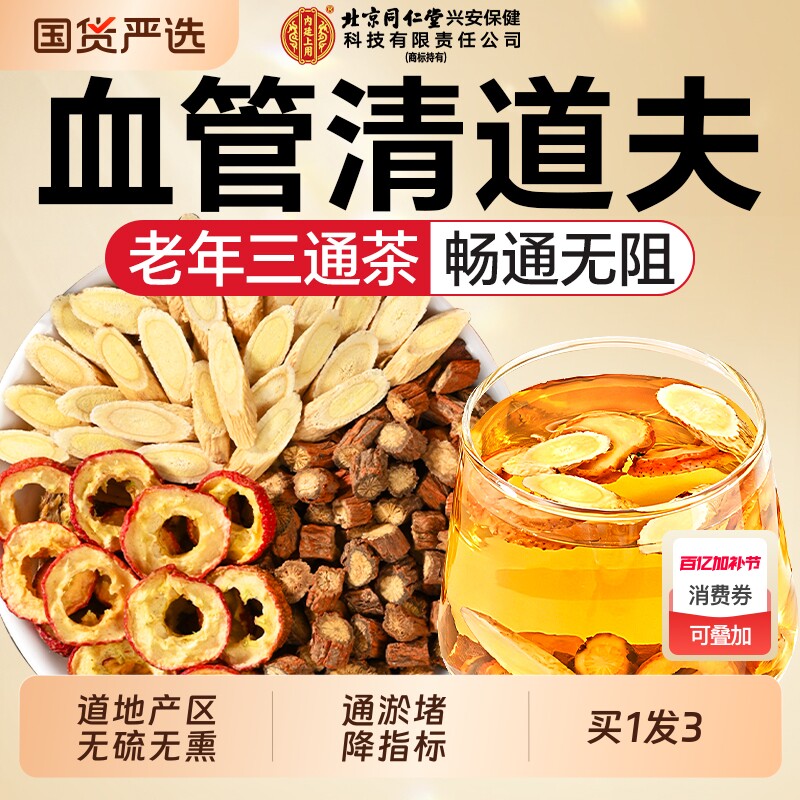 北京同仁堂三通茶山楂丹参黄芪中药材中老年泡水喝正品官方旗舰店