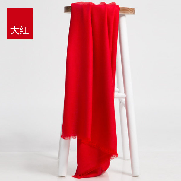 正品新 大红色超长纯色纯羊毛保暖围巾百搭秋冬毛边薄款羊绒披肩