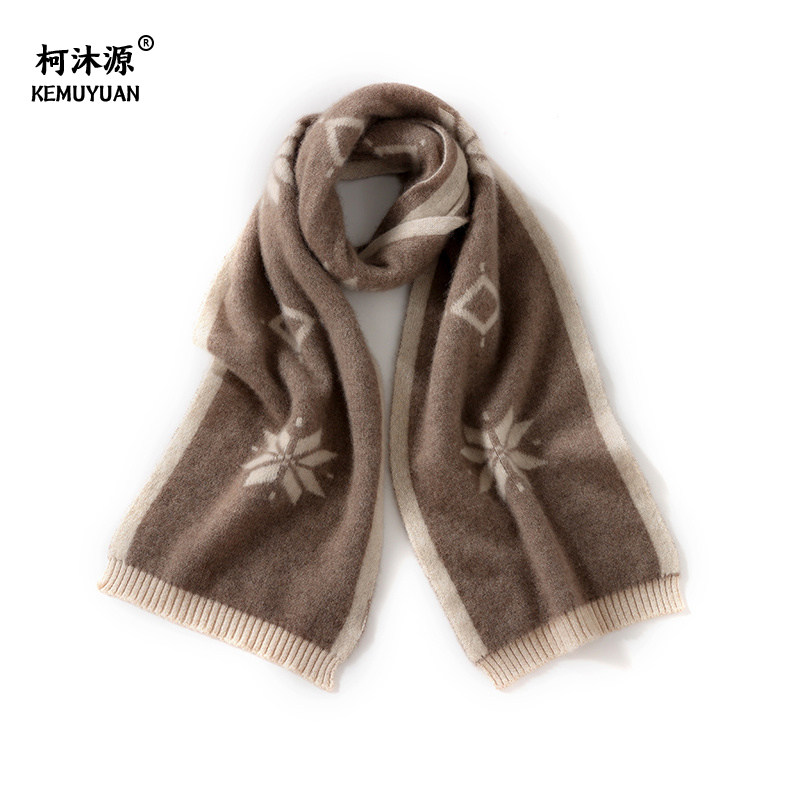 100%纯山羊绒围巾女秋冬季保暖百搭提花披肩超长款加厚针织围脖男