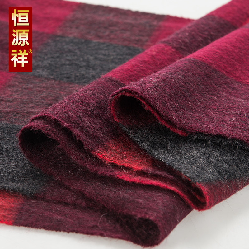 恒源祥羊毛2米2超长款围巾秋冬季格子高档羊绒加厚情侣男披肩两用