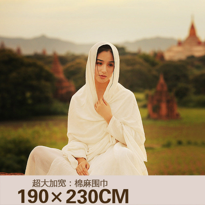 林制作棉麻围巾两用披肩 女秋冬纯色超长大舞蹈瑜伽亚麻丝巾2.3米