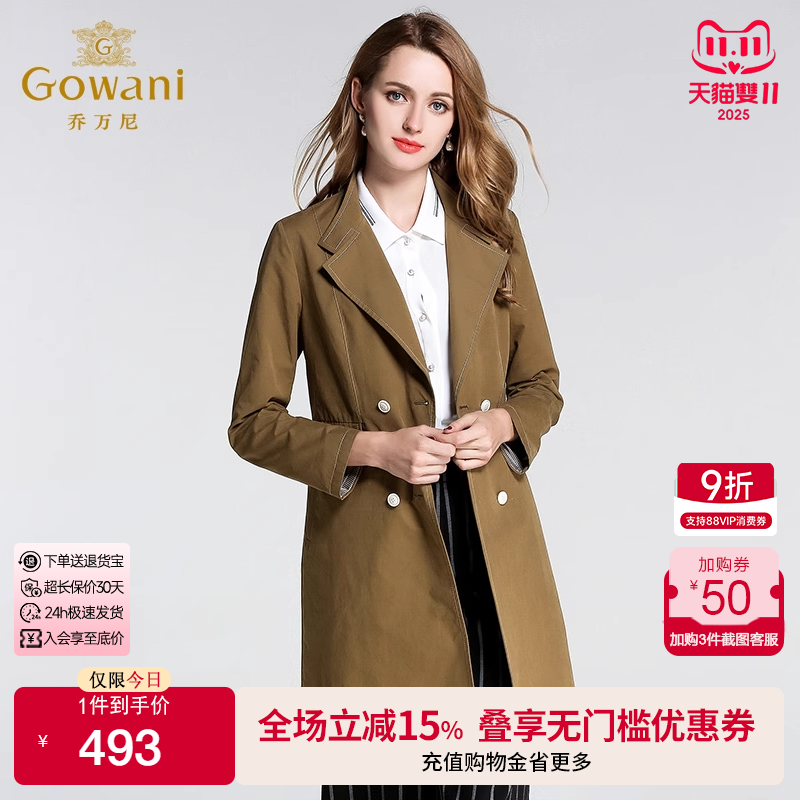 - 修身双排扣风衣外套女
