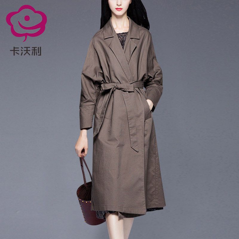- 宽松大码风衣女中长款