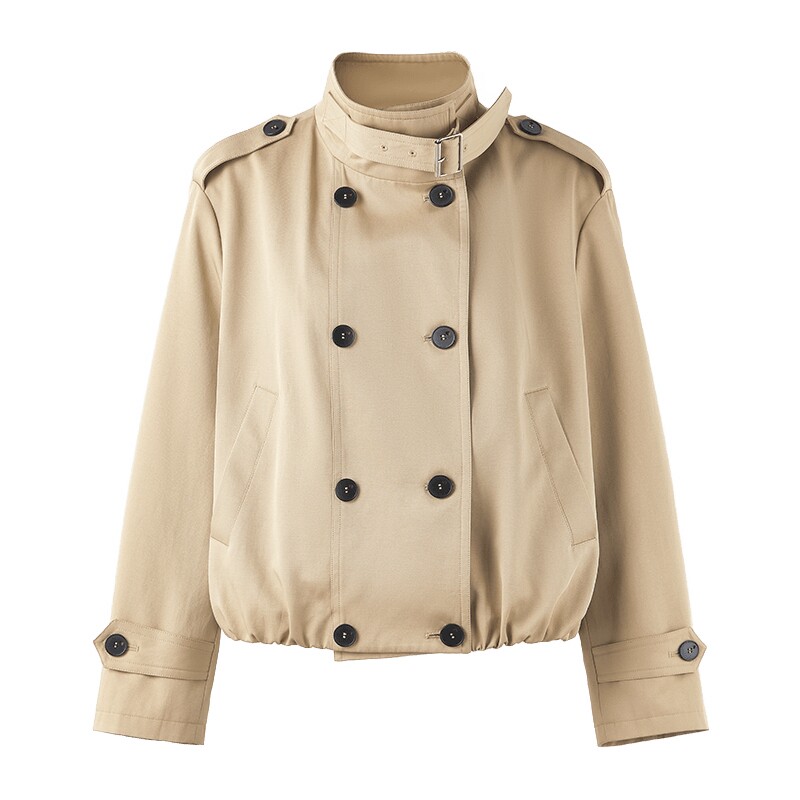 ByYou 春季新款高级感卡其色短款风衣外套女英伦风双排扣收腰大衣