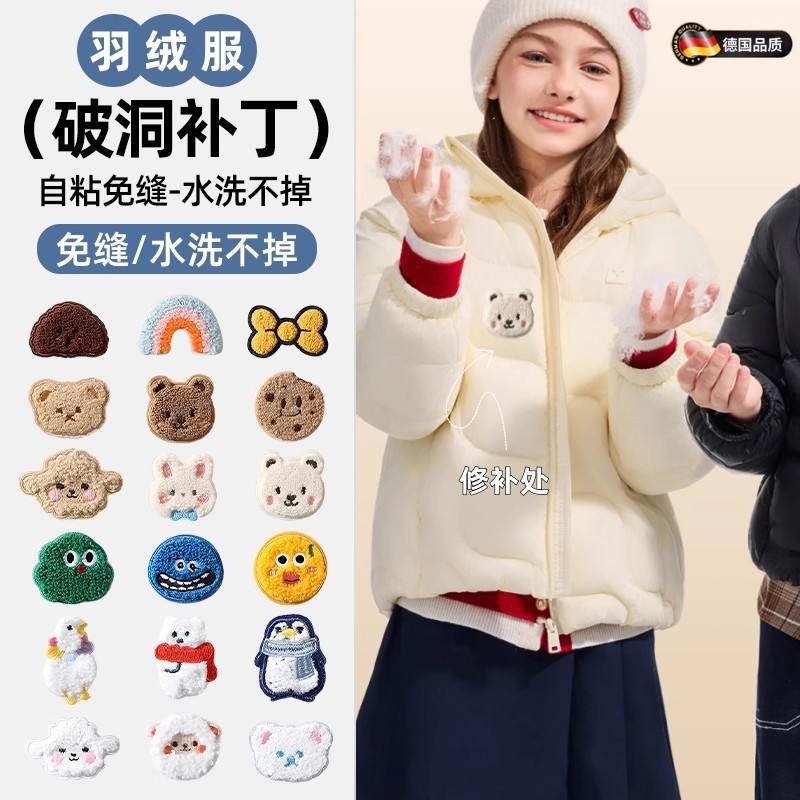 羽绒服补丁贴儿童刺绣自粘免缝衣服破洞无痕修补修复图案布贴可缝