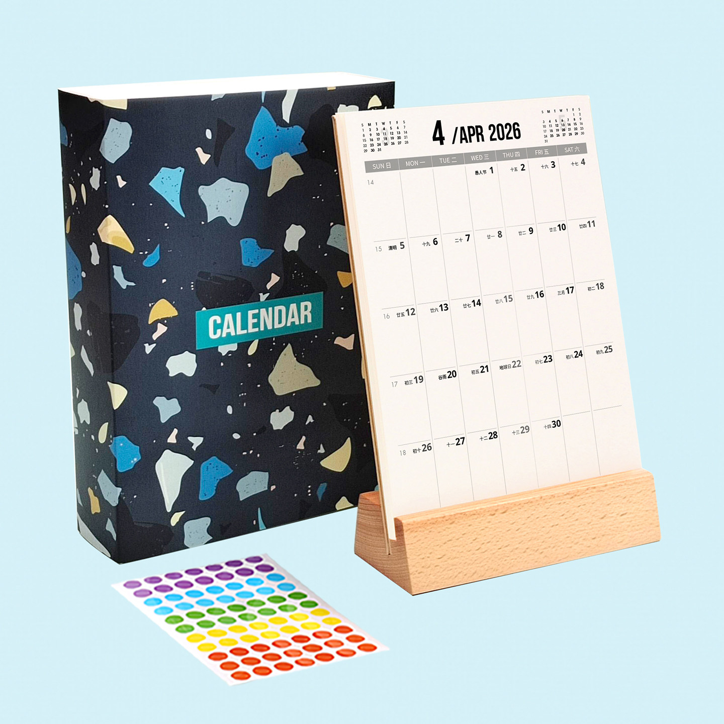 2026年跨27年月历简约台历无印风ins榉木底座日历记事月历可定制