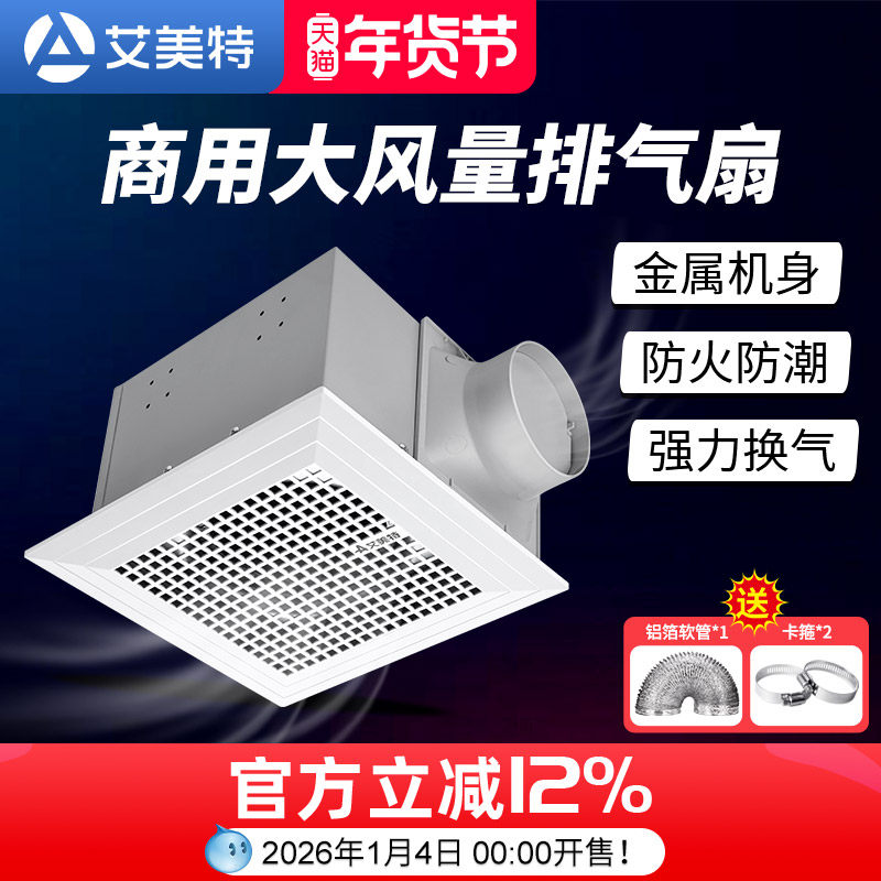 艾美特换气扇大吸力功率天花吊顶管道抽风机商用卫生间强力排气扇