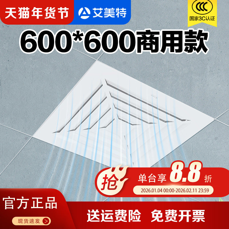 艾美特工程换气扇600*600商用大型排风集成吊顶天花板强力排气扇