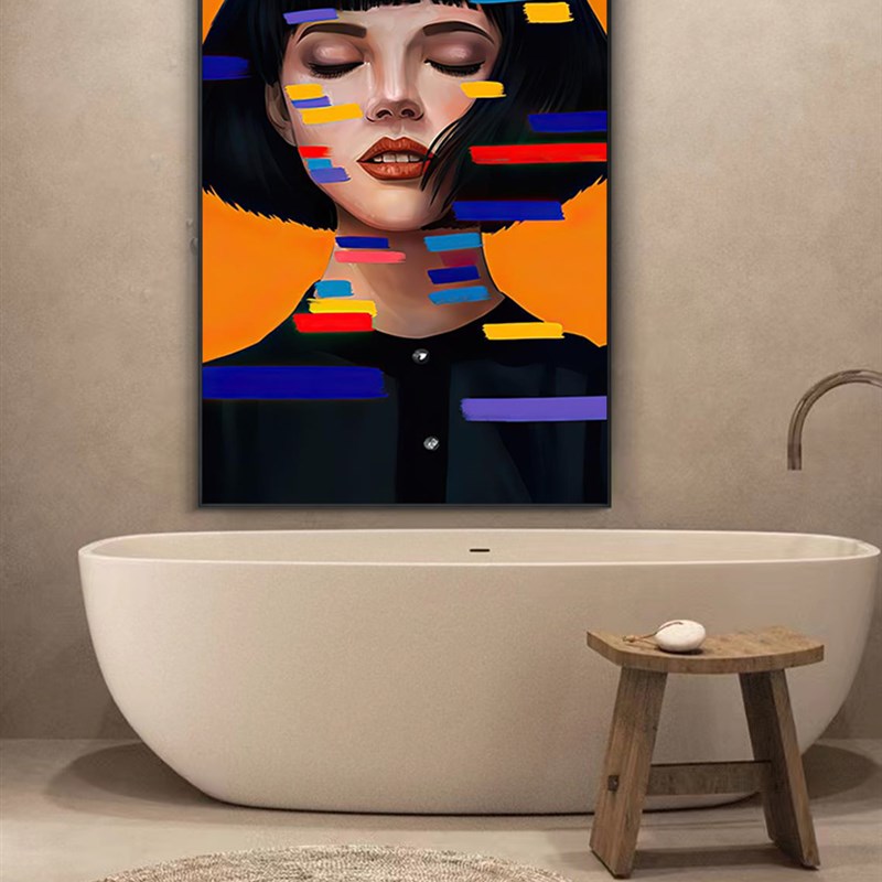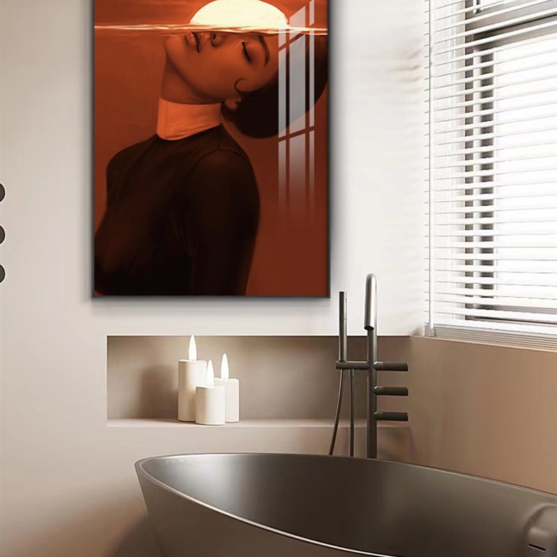 现代简约美女挂画卧室厕所防水晶瓷画酒店卫生间美容院洗手间壁画