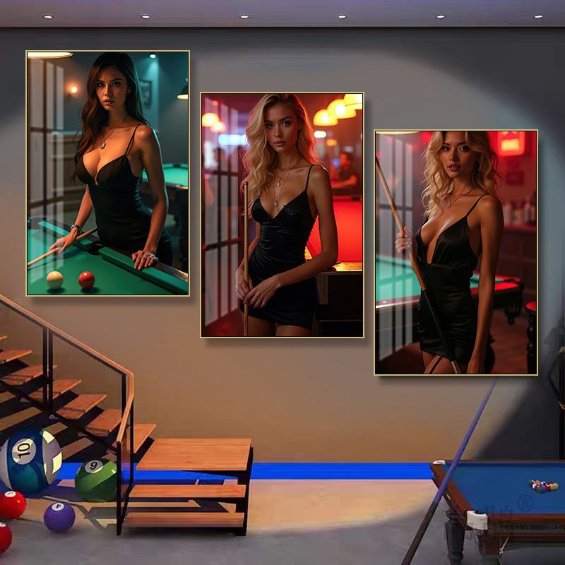 台球室装饰画斯诺克俱乐部背景墙壁画潘晓婷桌球厅台球厅美女挂画