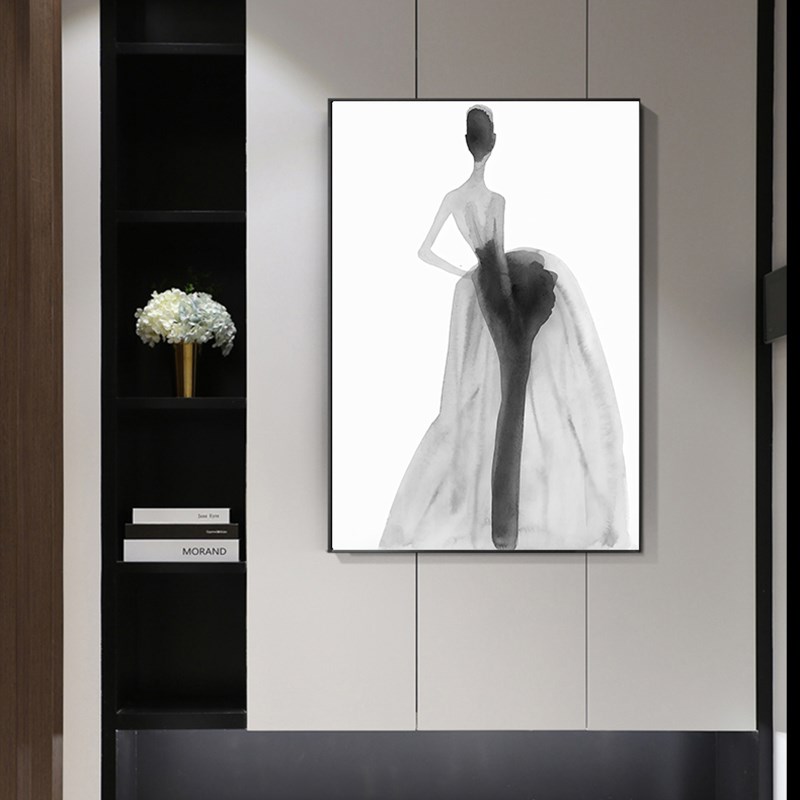 后现代轻奢客厅装饰画简约大气墙画黑白人物美女挂画卧室现代壁画